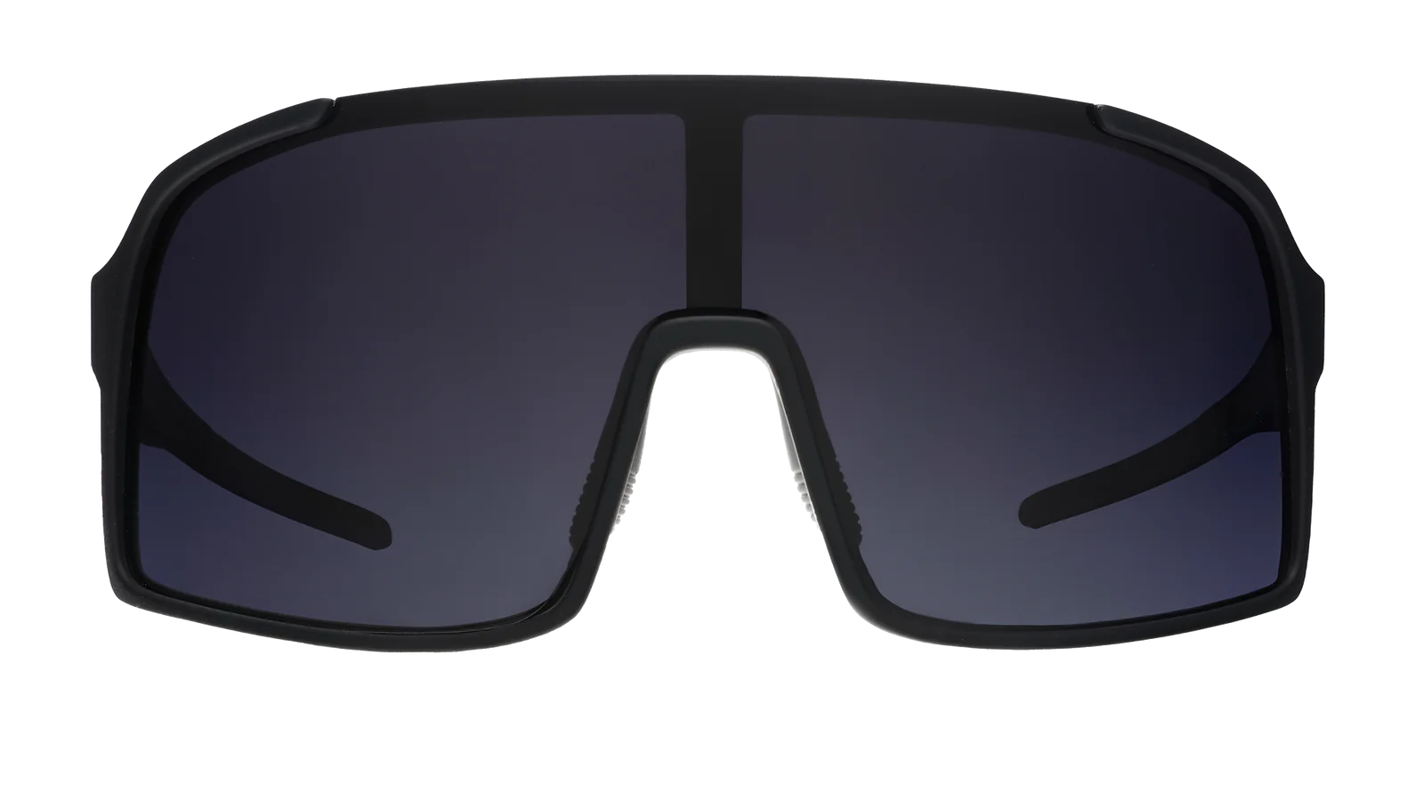 When you're SO hardcore, your sweat has an octane rating. Rock these black shield sunglasses w/ black gradient lenses & intimidate everyone w/ your flammable gym routine. (PSA: Please don't work out near an open flame. Extinguisher not included.)
