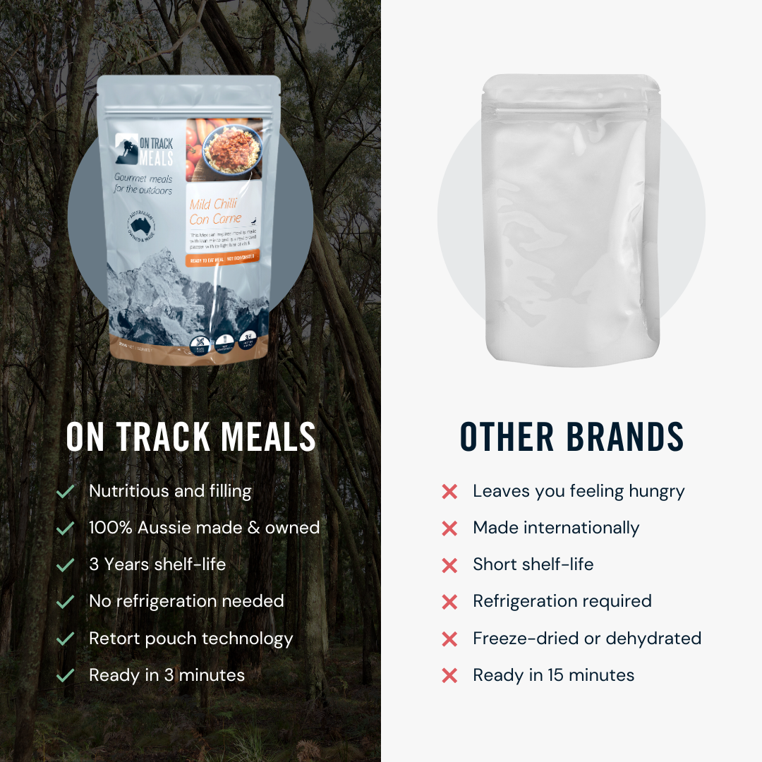 On Track meals are packed fresh with real ingredients so you don’t miss out on taste or nutrition. We use retort technology to seal and cook, ensuring that our meals stay fresh and taste terrific.