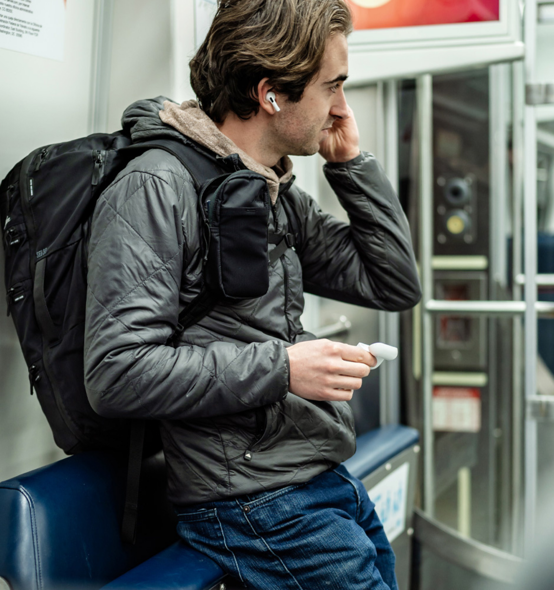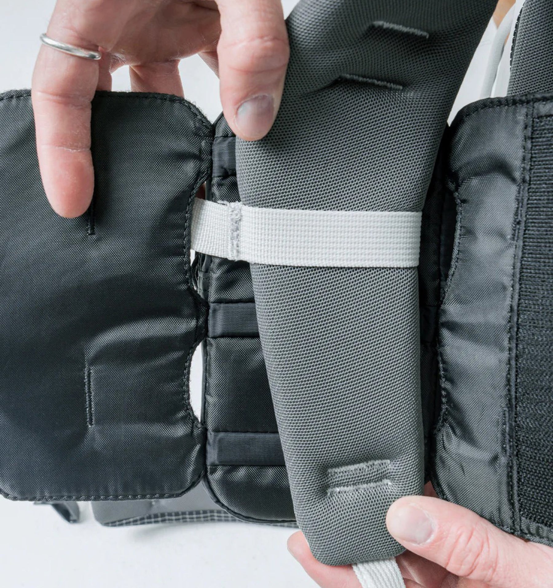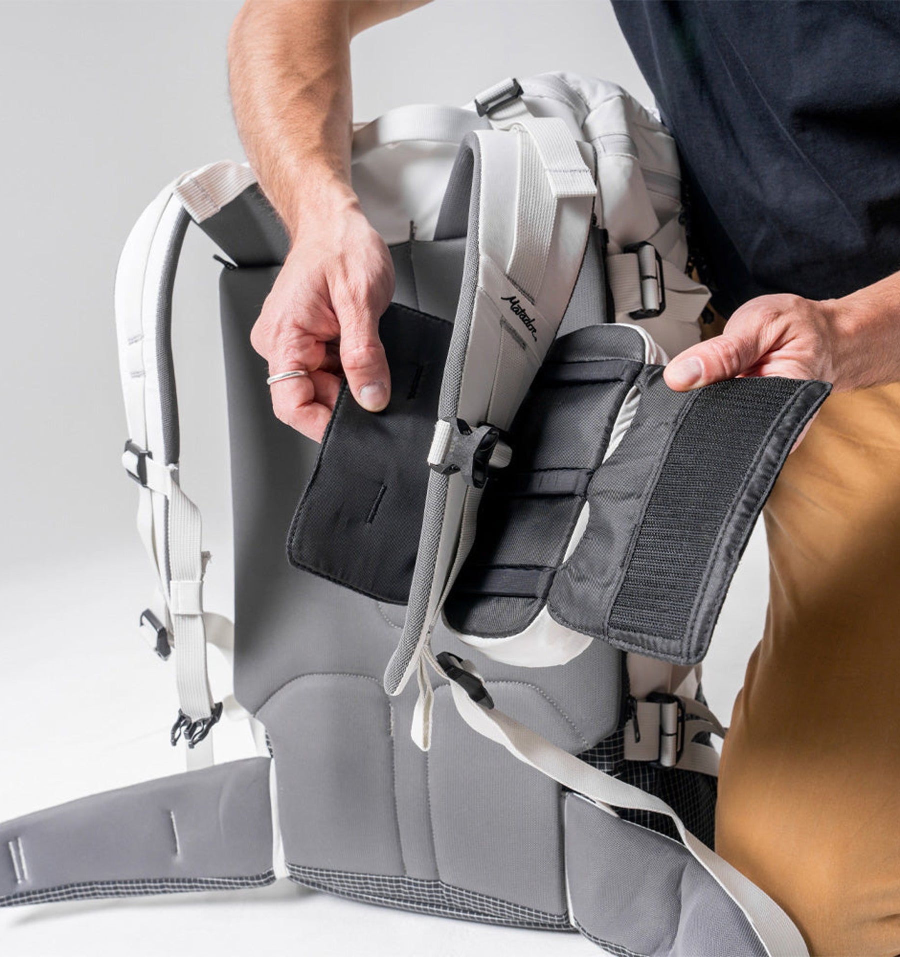 - Cushioned, breathable panel behind the backpack strap