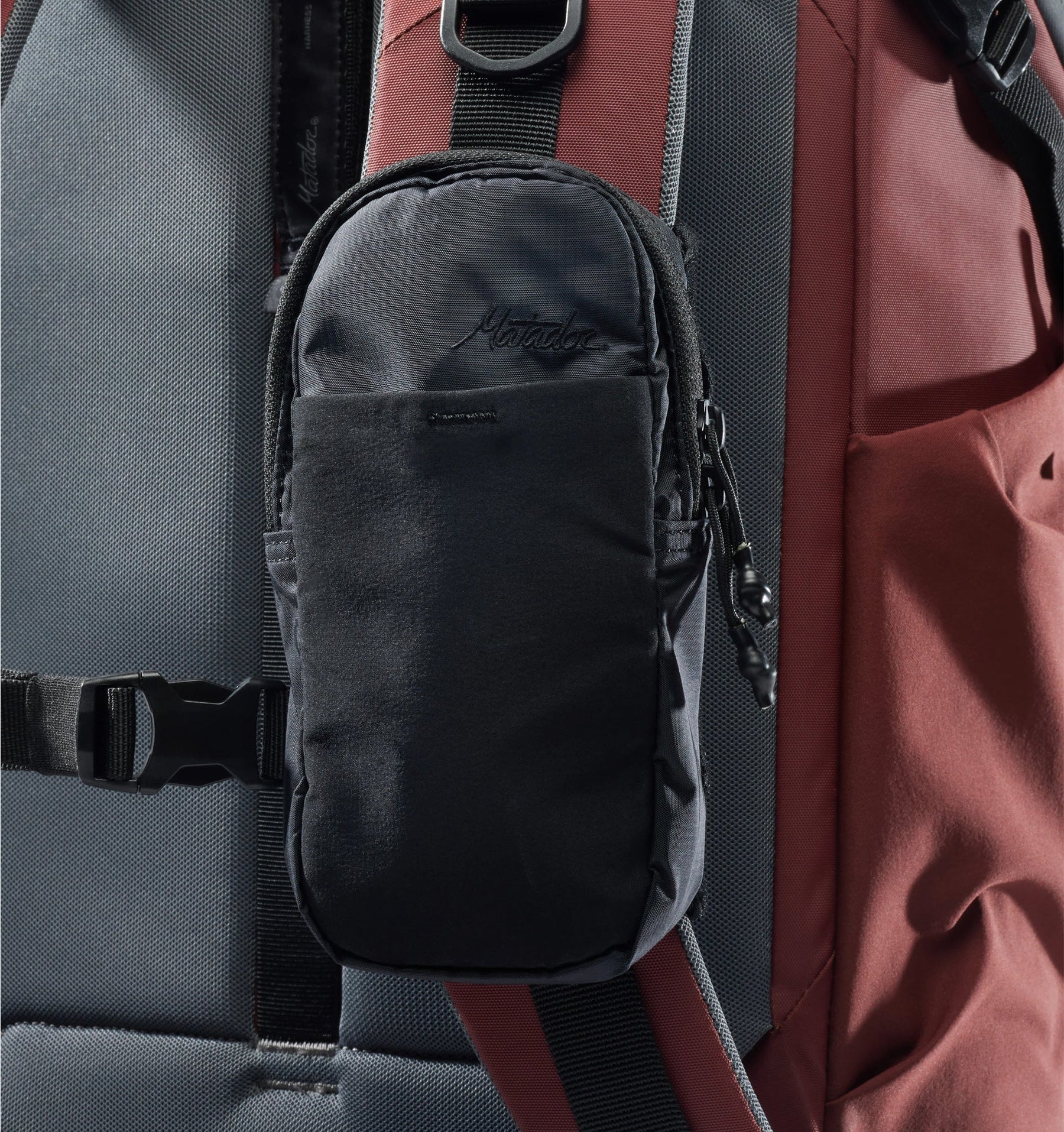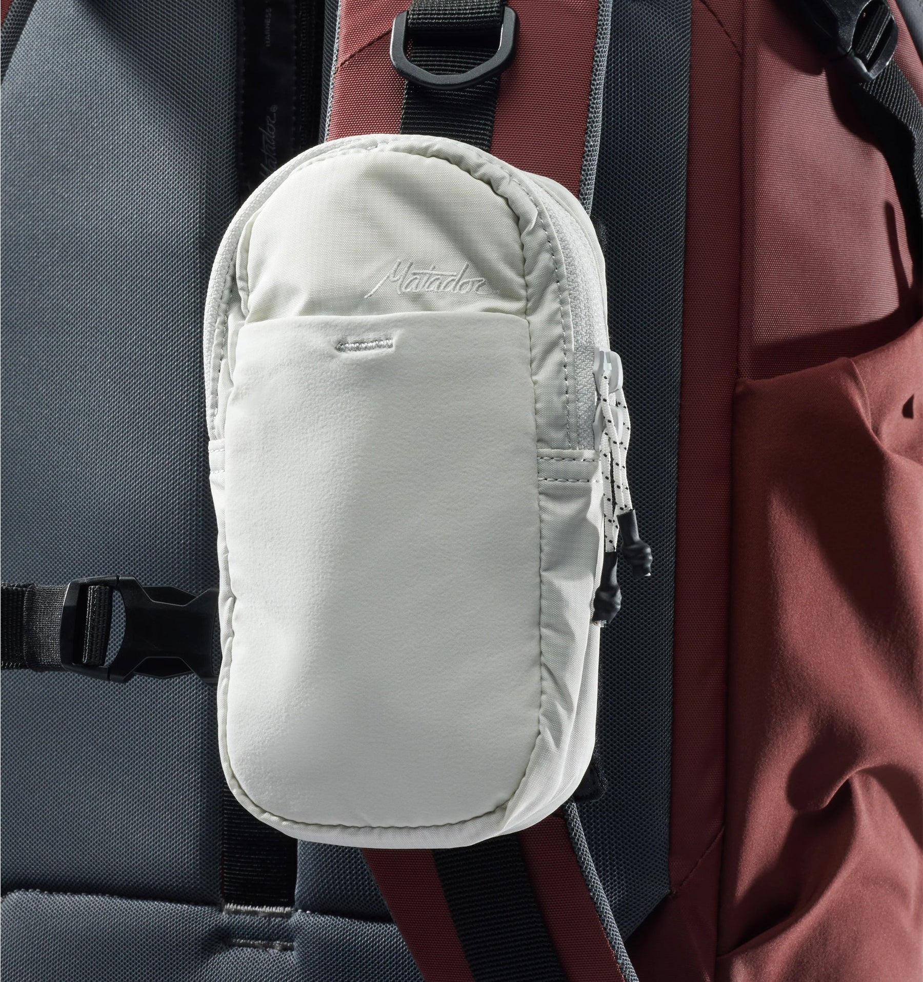 The Matador Speed Stash attaches to the front of your backpack shoulder strap to offer quick access to your phone, passport, wallet, snacks, or other small items. Perfect for travel, hiking, or daily use, the Speed Stash is engineered to attach securely to any backpack that has a sternum/chest strap, even if it’s unbuckled.