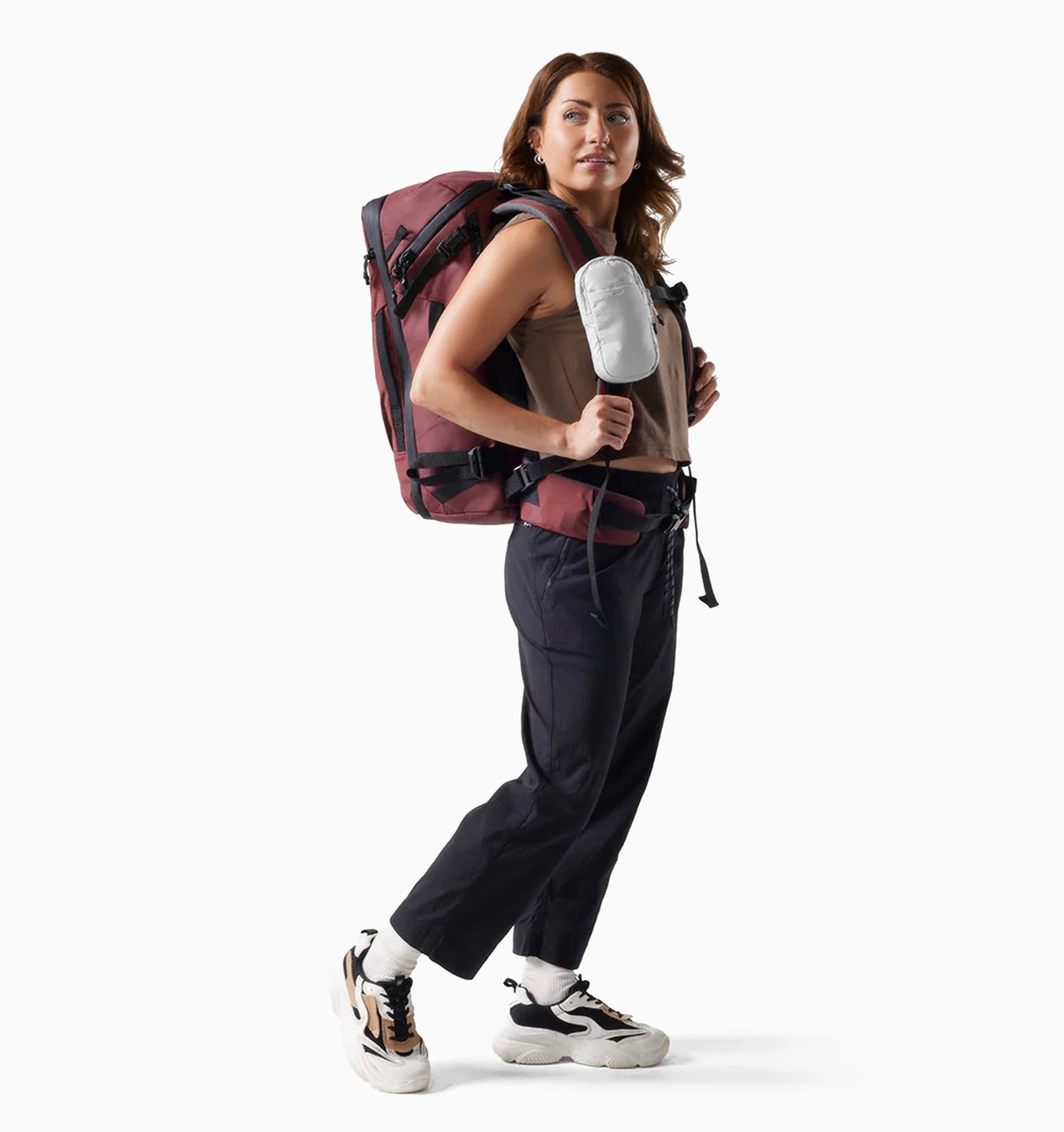 - Locking bars trap sternum strap hardware for a no-slip fit