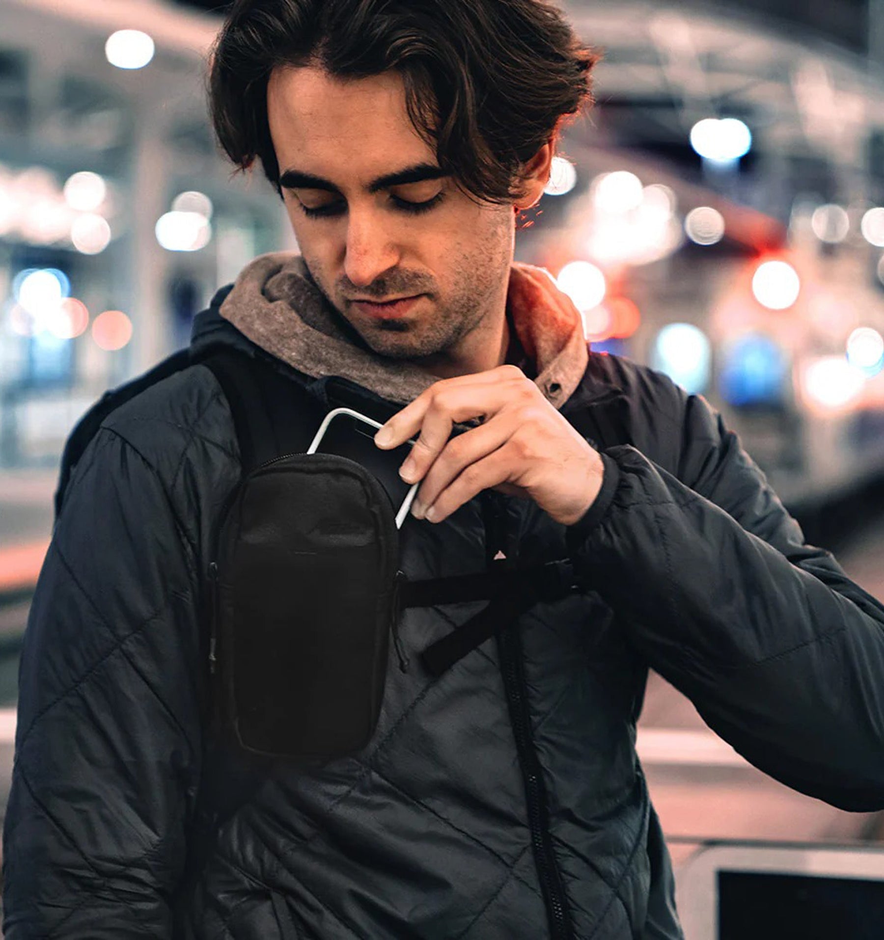 - Open-top elastic stash pocket for instant access