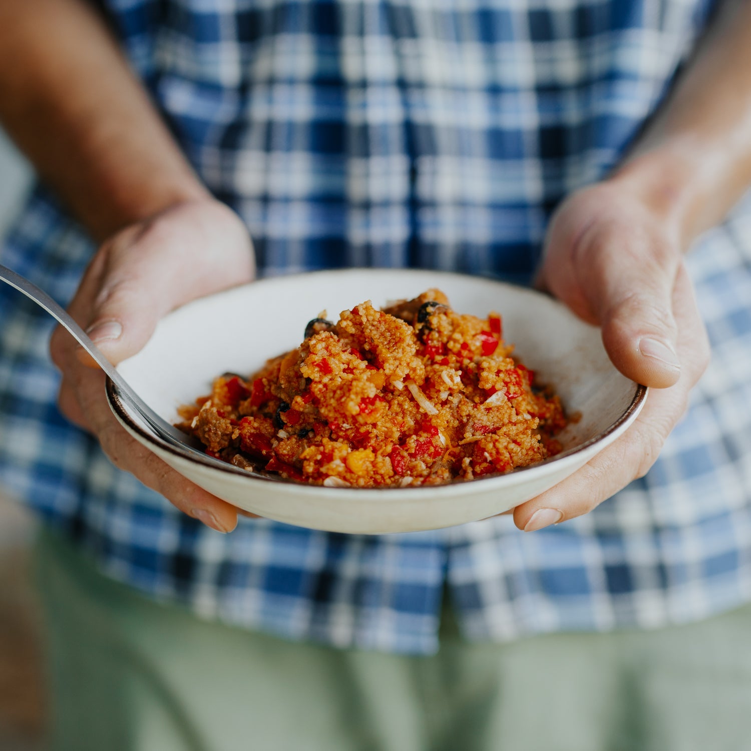Seasoned lamb served with a fusion of Mediterranean spices, couscous and roasted vegetables. No added dairy. Halal