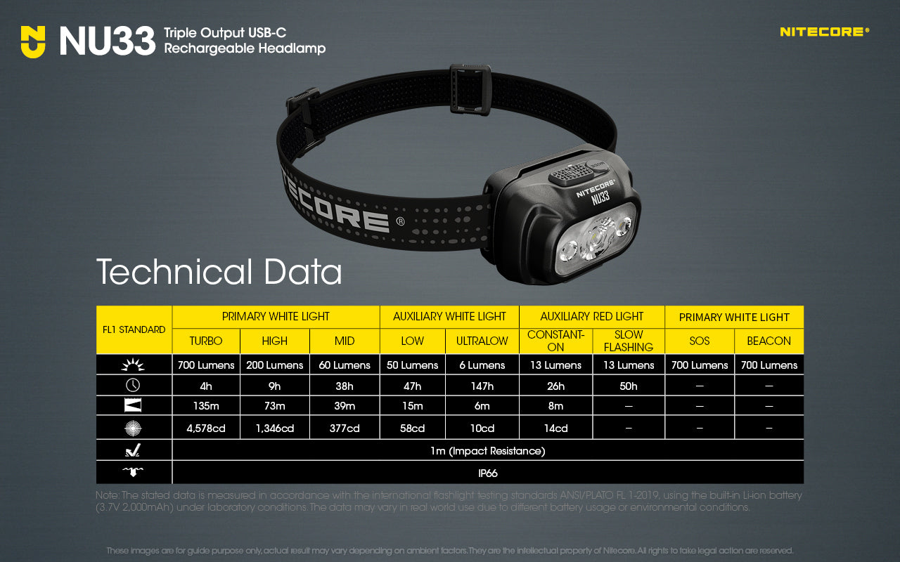 15% smaller than NU32, the lightweight NU33 takes the center stage as Nitecore's new all-rounder headlamp for night running, outdoor adventures, or camping.